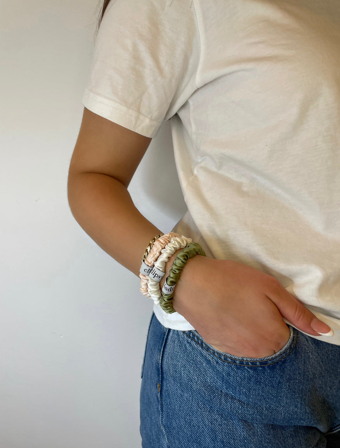 Vores silke scrunchies er udviklet til hverdagsbrug, de er fremstillet af 100% silke, designet til at erstatte traditionelle hårelastikker, og tilbyder en skånsom oplevelse for dit hår.